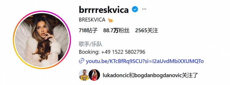 东契奇关注Breskvica、本人照片如下