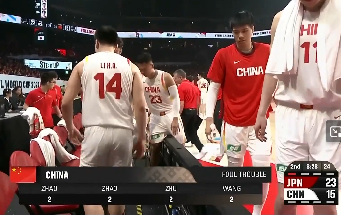 中国队遭遇犯规麻烦,其中赵睿、王浩然、朱俊龙、赵继伟各领到2次,廖三宁1次。