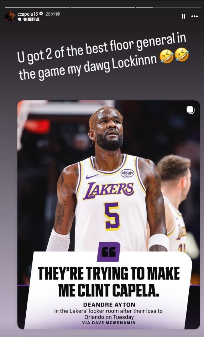 卡佩拉写道:“你们有两个最好的球场指挥官,专注点吧兄弟!”
