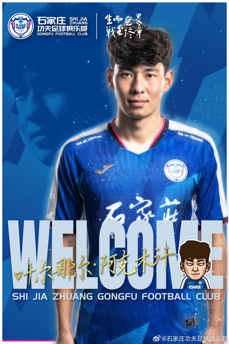 欢迎叶尔那尔·阿克木汗加入石家庄功夫大家庭!期待他迅速融入球队战术体系,以稳健的防守和积极的拼抢,为球队后防注入青春活力,为城市荣耀全力以赴!