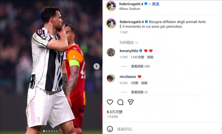 2月27日讯 在尤文从欧冠出局后,尤文后卫加蒂更新社交媒体鼓励球队。